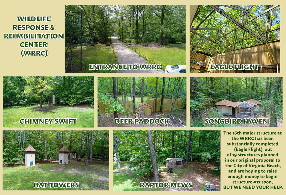 (WRI) is working on building a Wildlife Rehabilitation Center (WRRC). The 16th major structure at the WRRC has been substantially completed, out of 19 structures planned in our original proposal to the City of Virginia Beach, and are hoping to raise enough money to begin Structure #17 soon, but we need your help.