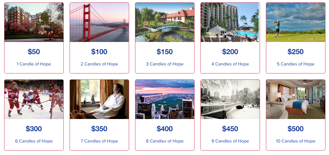 3. Consider purchasing more Candles of Hope ($50/each) - the more you purchase, the more chances you have to win anyone of the amazing raffle prizes!