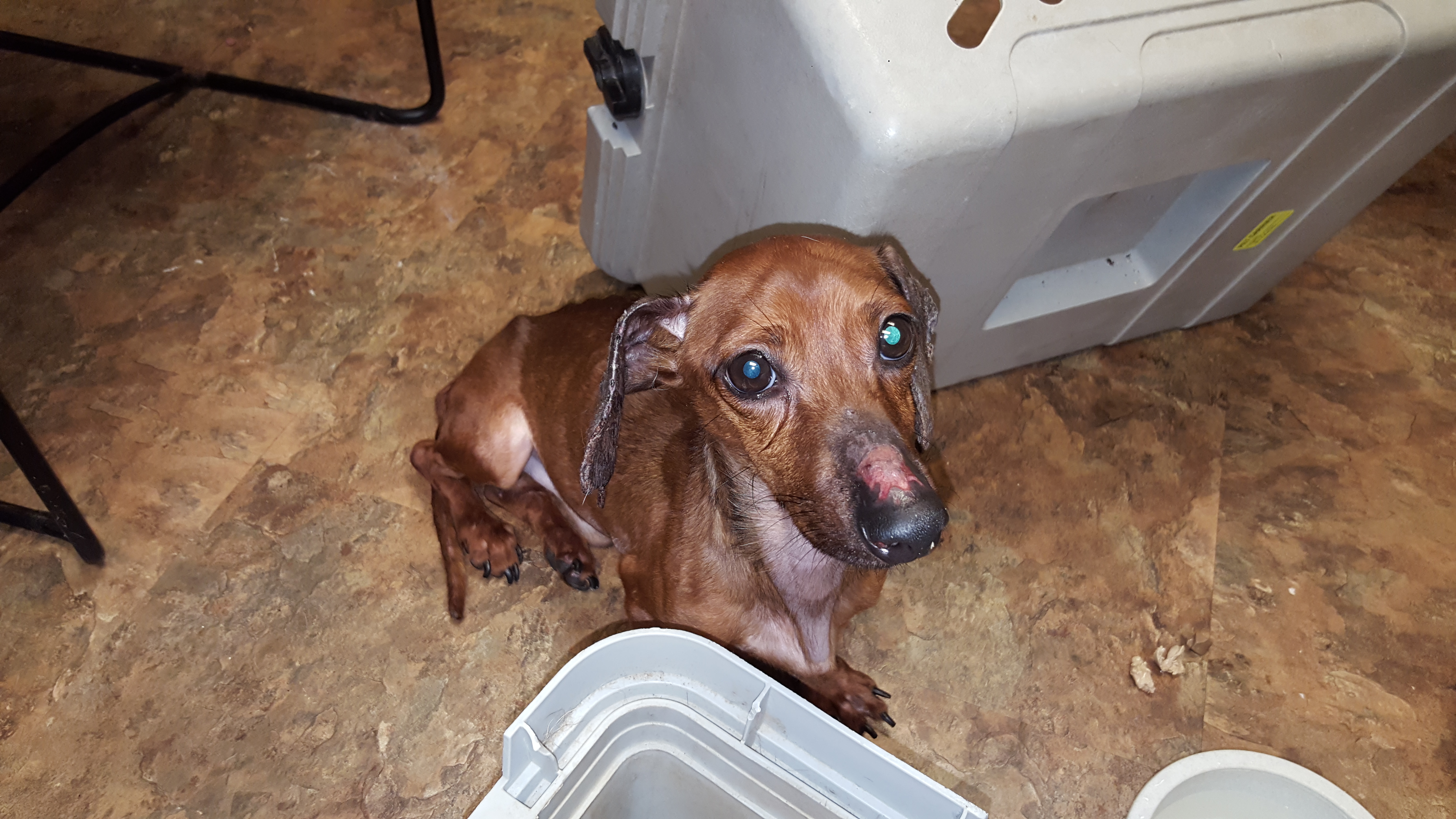 Schultz was found roaming the streets during the summer heat of 2017. He was badly sun burned, neglected and emaciated. His little ears were so infected from flies and fleas he had no hair on them. At CARA he received skin treatments and lots of love and care until he was adopted into a loving family.