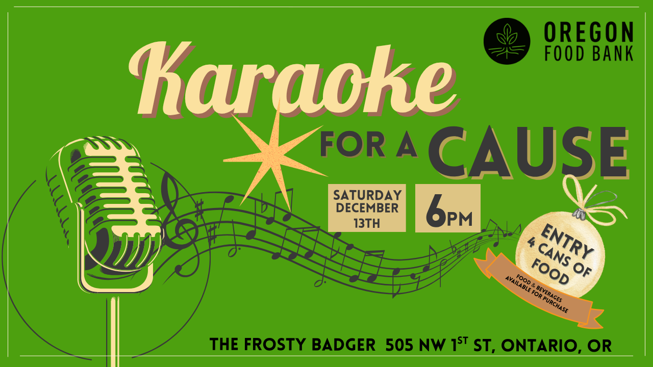 Nominate your favorite local leaders, business owners or neighbors to take the stage in a holiday karaoke showdown-Thanks to an anonymous donor, every dollar raised will be matched, all to support the Oregon Food Bank and the future Ontario Community Food Center!