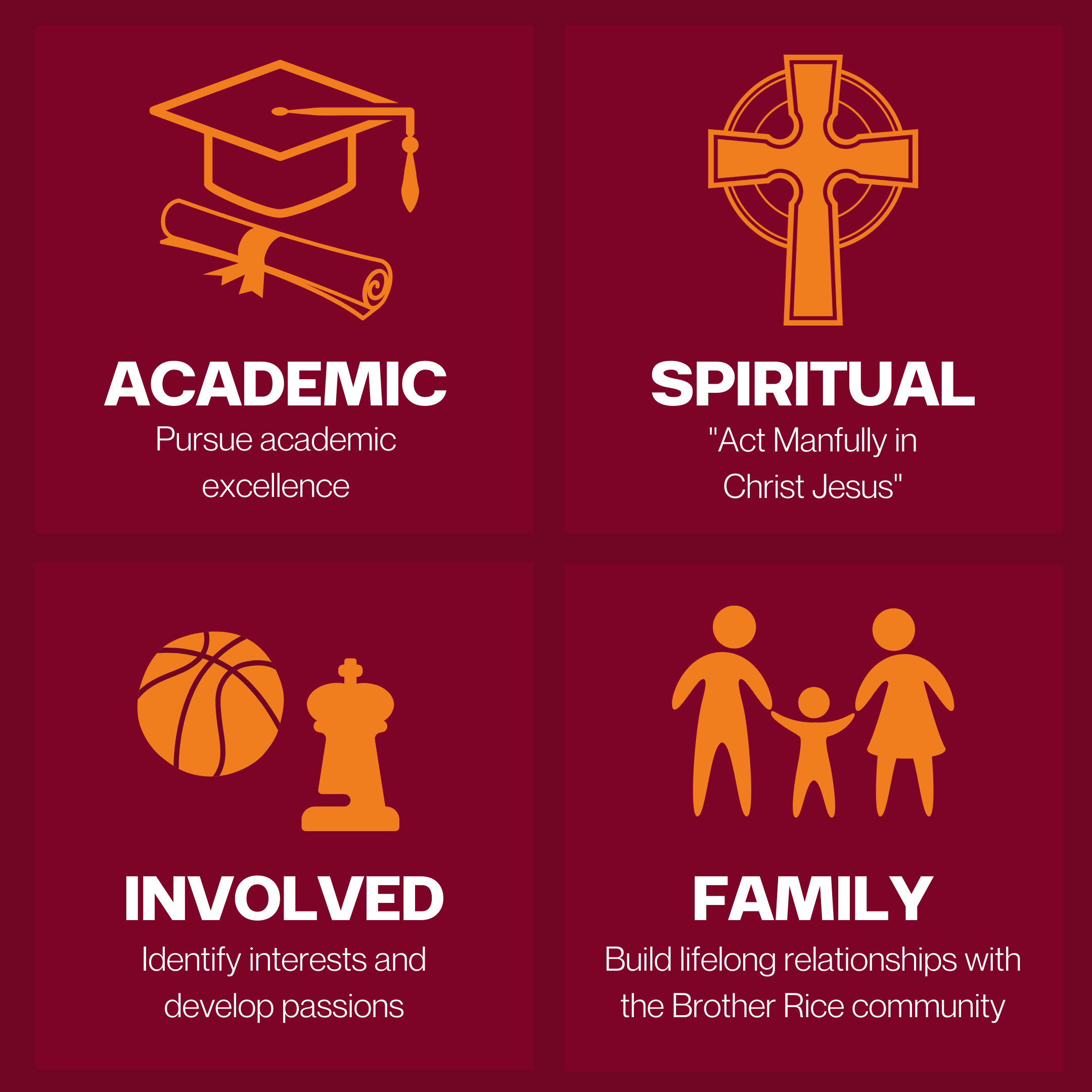 This year's theme is "GIVE BACK. GIVE THANKS." in which we celebrate the Four Cornerstones of a Brother Rice education; Academics, Involvement, Spirituality, and Family. These Four Cornerstones focus on how we grow together as a community. Our goal at Brother Rice is to develop the whole person and have our students leave as well-rounded young men.