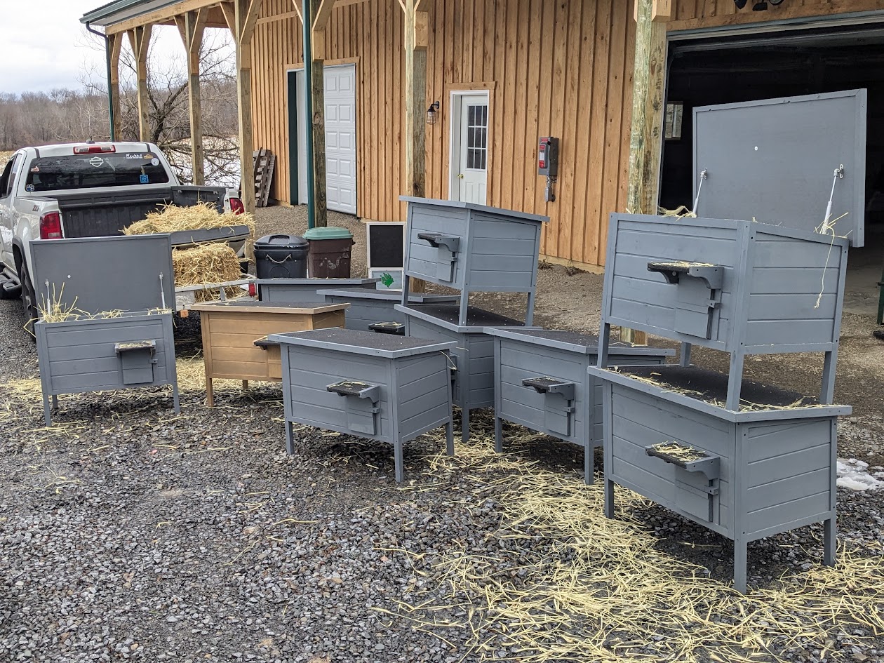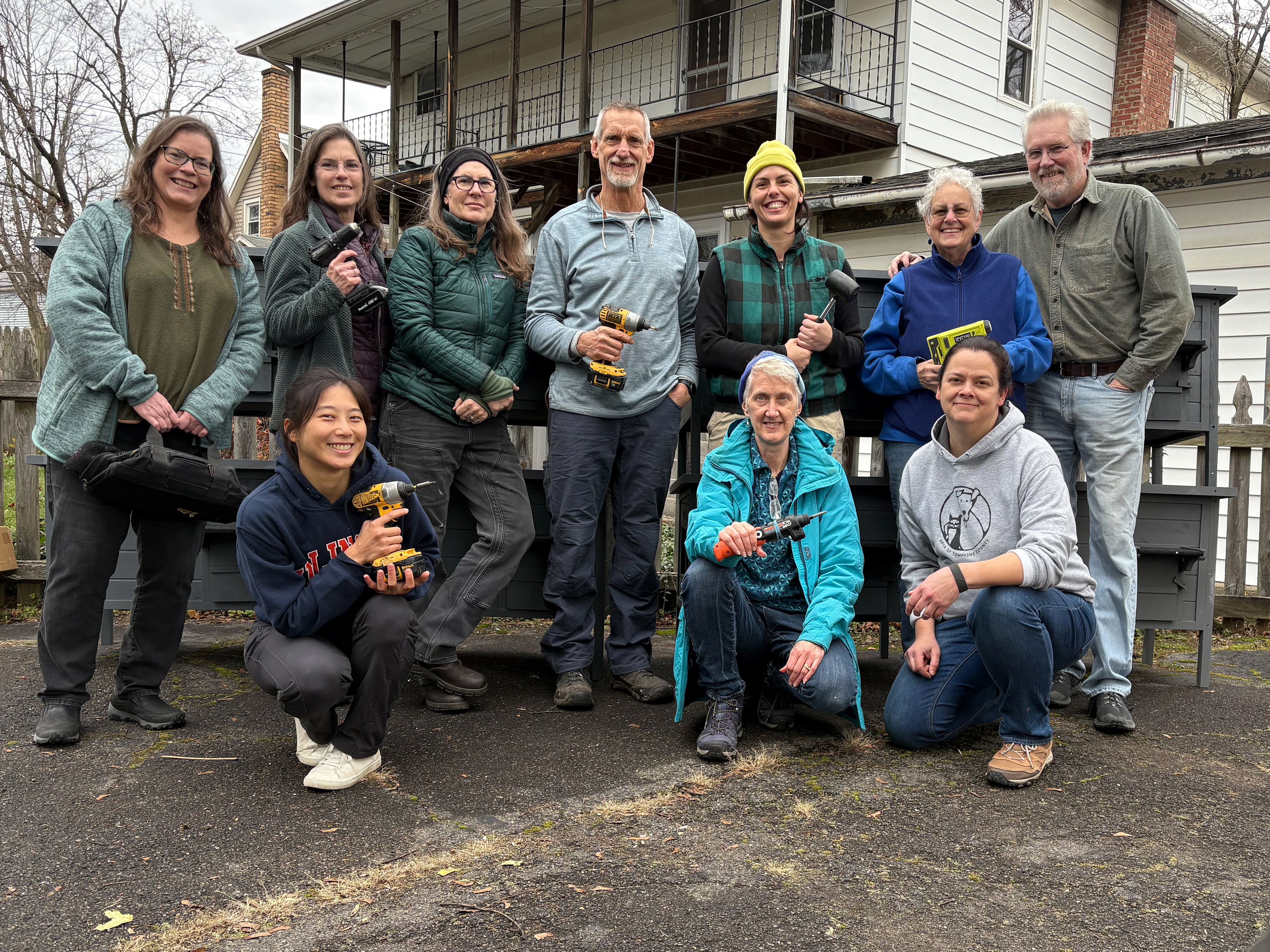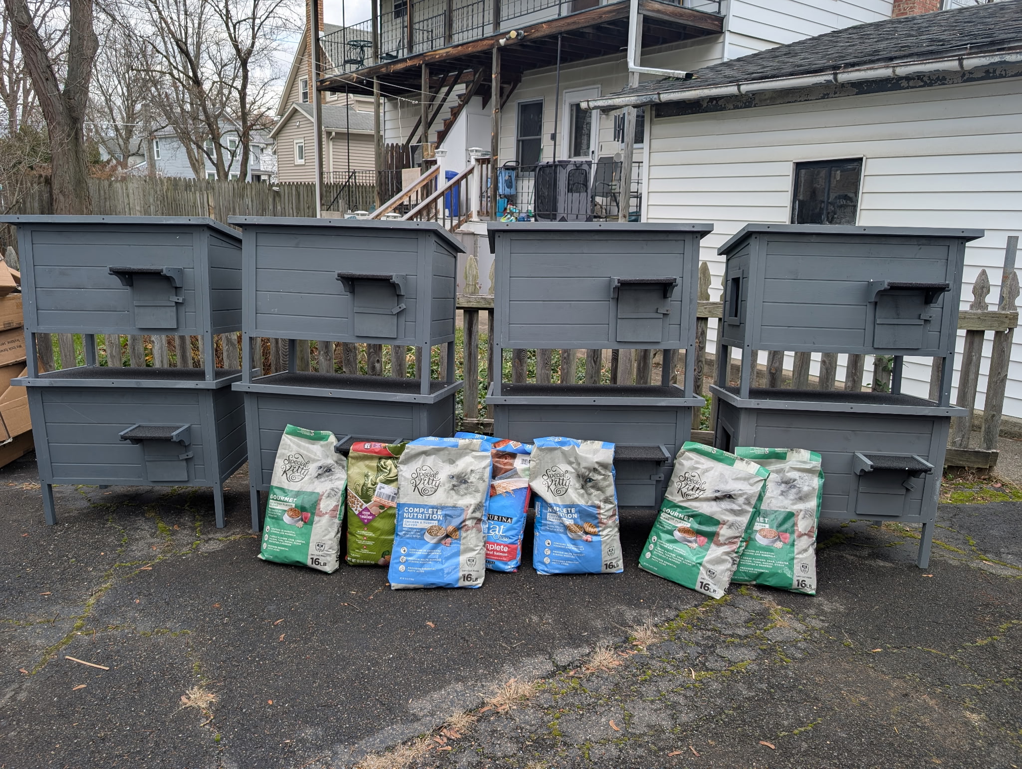 Thanks to several generous donations and the power of our volunteer corps since 2024, 32 shelter kits to provide winter housing were assembled and distributed to our TNR locations in Freeville, Enfield, Ludlowville, and on Hanshaw Road. With each winter shelter provided, straw and cat food were included for the cats. They also built two feeding stations for the cats.