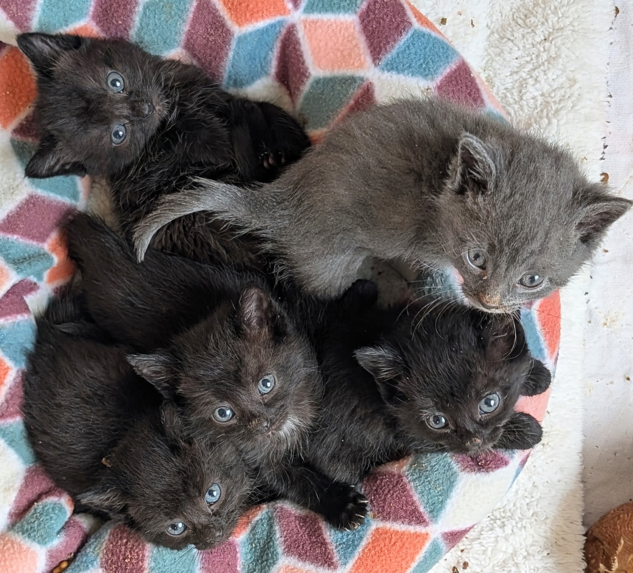 This pile of kittens was pulled from under a porch at Hanshaw Village after the resident called to ask for help. SPCA volunteer Bob Terry crawled under the porch to bring the kittens to the shelter for placement with uber-foster Allison Myers until they were socialized and old enough to be spayed and neutered. The team also trapped and brought in the mom and tomcat of those kittens who were then both altered. End result, no more kittens from them and a new happy fur-ever family. Victory!
