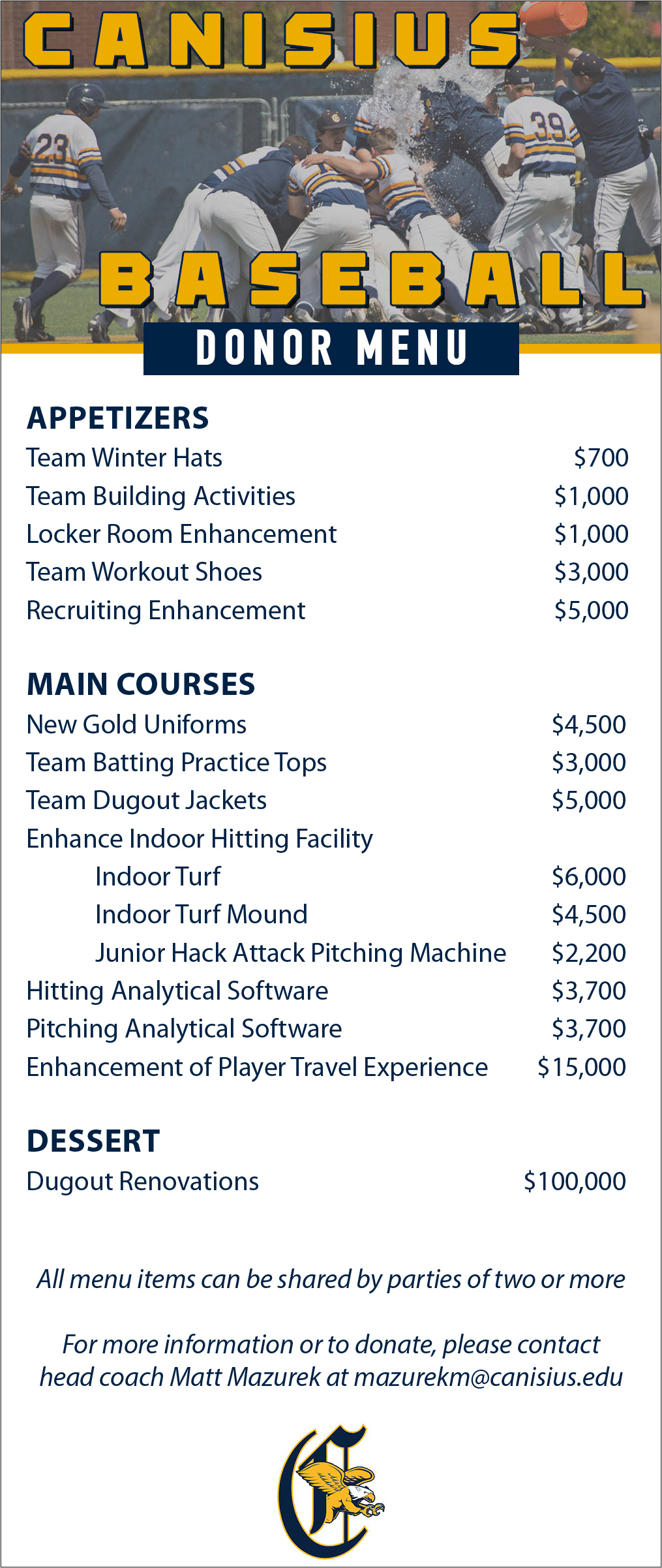 Gifts to Men's Baseball last year helped make the 2017-18 campaign a remarkable chapter in the history books! The 2017-18 Men's Baseball team claimed the MAAC Champion title, went undefeated in the four tournament games and clinched a trip to our third NCAA regional appearance since 2013.