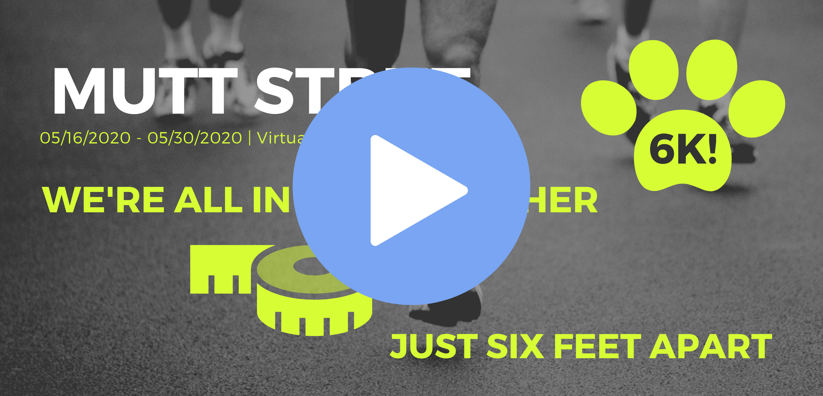 Join in the fun of our Virtual 6K Mutt Strut! This is a virtual race you can run, walk, hike or use even your treadmill. All abilities are welcome and you choose how and when you will complete the 6K distance between May 16th and May 30th.