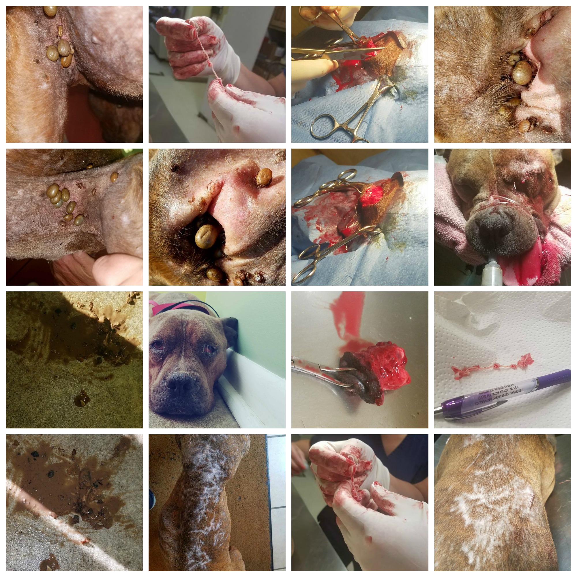 ** I am wanting to update on here to where we are at with this. Preacher has spent 6 weeks in the Hospital and finally was able to undergo surgeries, he has another likely to go. I will try and post a picture or two which are rather graphic. He lost his eye because it was punctured entirely through from the bite(s) through the eye that literally ruptured the eye which became horribly infected and sent infection raging through his body. He has thousands of bites and scratches new and old all over him. He had thousands of ticks with some having to have procedures to remove from his eardrum. This boy suffered so much and was giving up. We spent days praying god save him we will fight for his life please strengthen his spirit and soul to fight this battle for his life. He has done that. But we have raised little over $1300 on his behalf and have still over $6000 vet bill to go. He has undergone around the clock care and we have struggled to live but he has done just that. Surgery was also preformed to remove masses off his spine. One was a mass of scar tissue from so many horrific bites. The other was a massive worm!! Yes.. Pictures of it are available. His surgeries were recorded and captured in pictures as well. He still has two more masses to go for surgical removal.