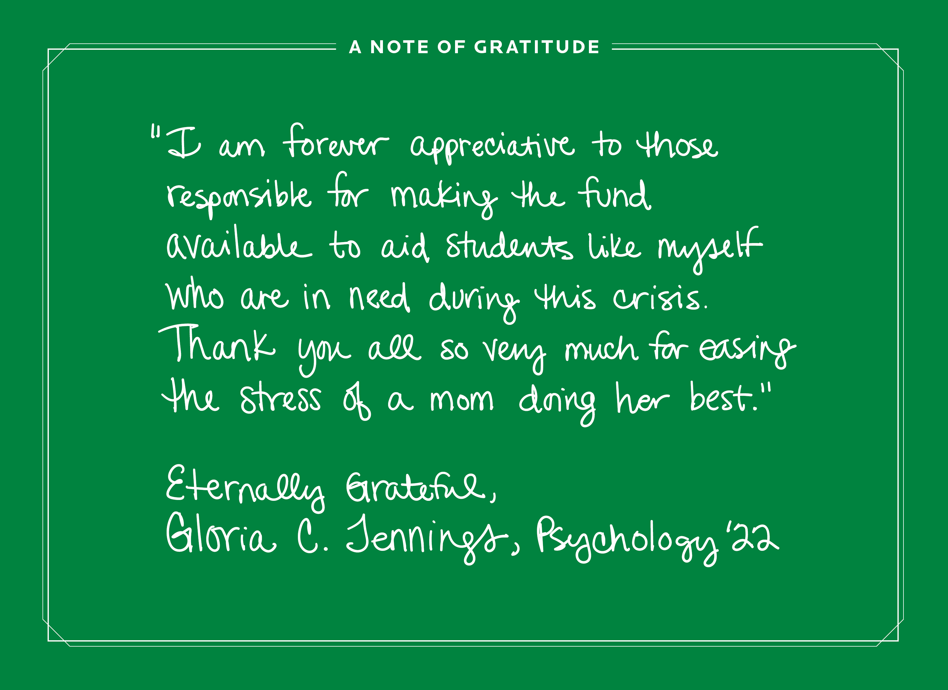 The Student Emergency Assistance Fund, founded in September 2019, provides one-time emergency grants for students with unforeseen and extreme financial hardships and assists with personal expenses like rent, medical bills, gasoline, groceries, childcare — expenses that may otherwise hinder a student’s progress toward their Roosevelt degree.