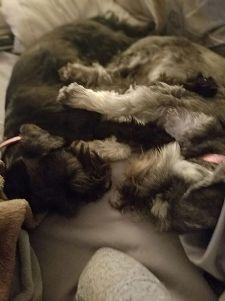 The second photo is Jojo napping with her half sister, Candy, for the first time ever!