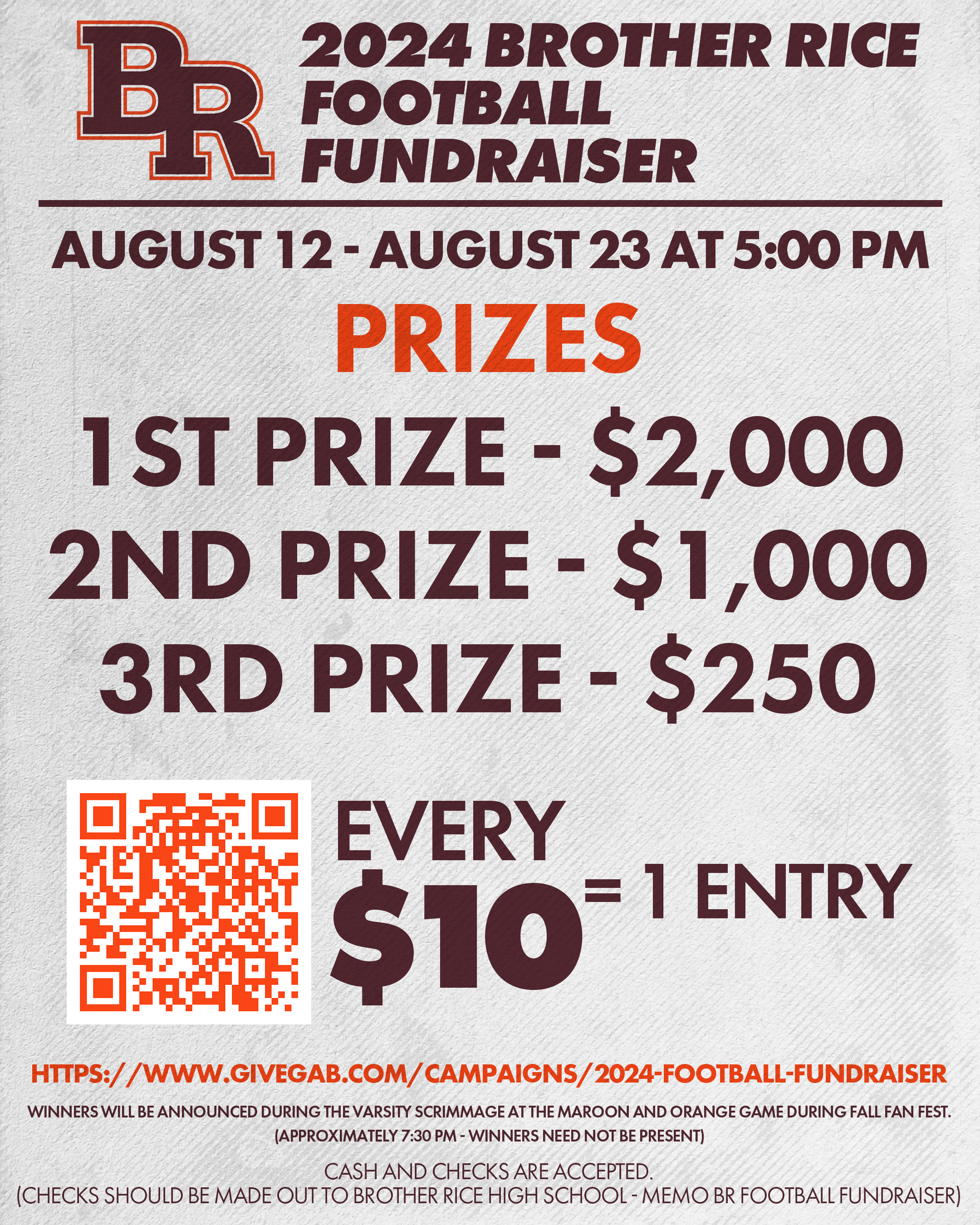 Exciting Raffle Prizes: For every $10 donated to the football fundraiser, your name will be entered into a drawing to win one of three cash prizes: