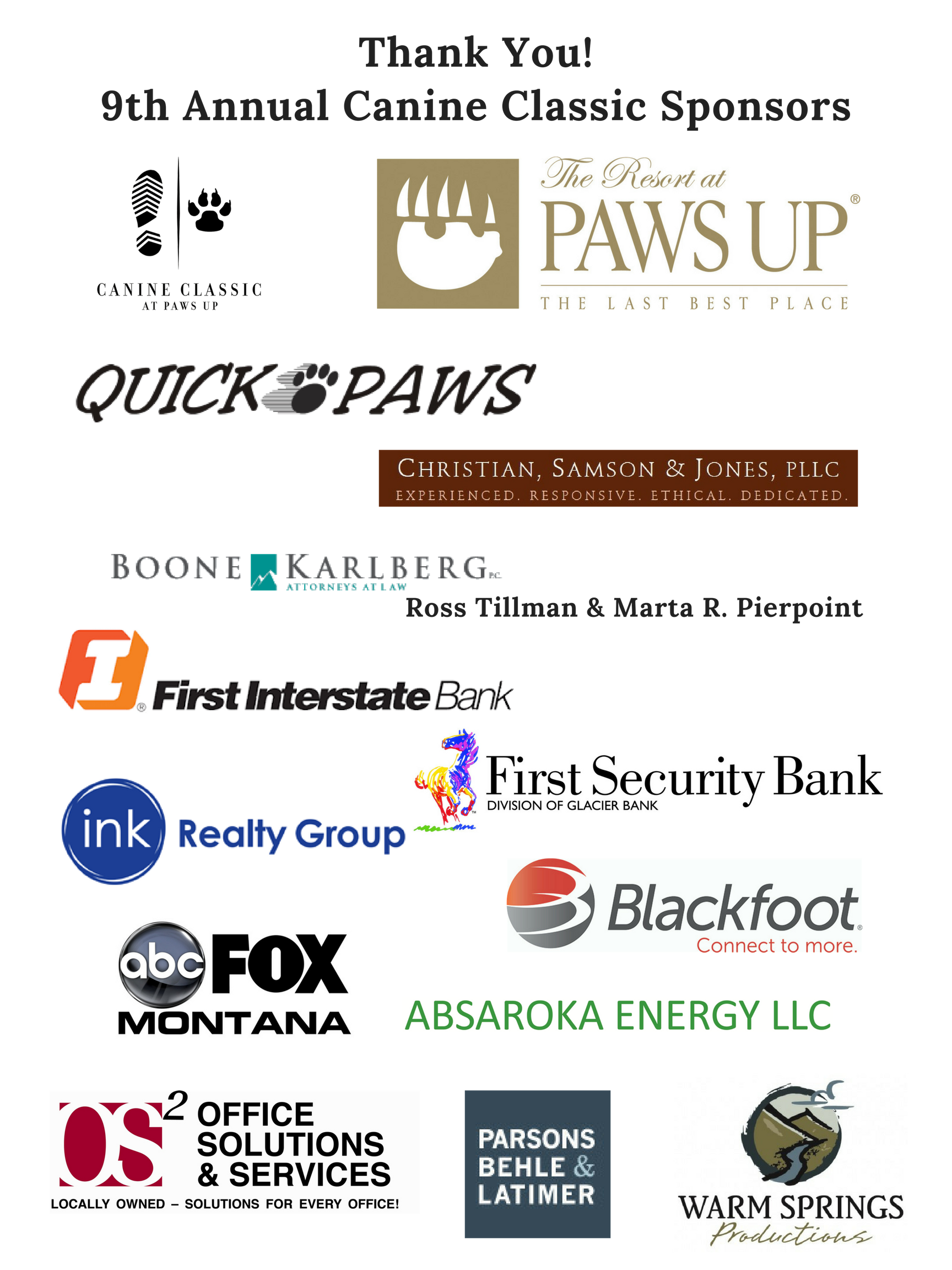 Thank you to our 2017 Canine Classic Sponsors: